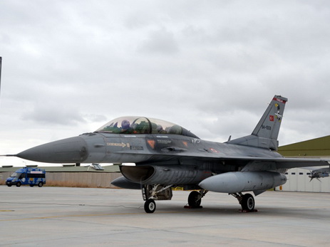 Как сообщили в пресс-службе Минобороны, в соответствии со сценарием учений пилоты ВВС Азербайджана и Турции на самолетах F-16 провели операцию по уничтожению условных мест дислокации террористов.